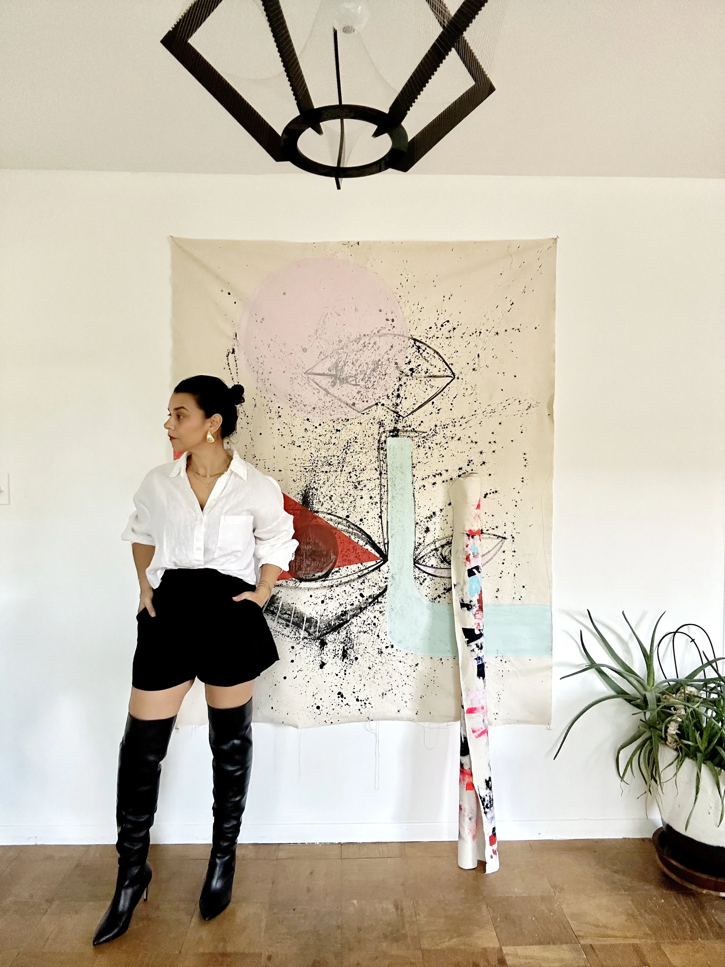 After studying Fashion photography at the Art Institute in Fort Lauderdale, FL, Dominique worked in the photography space for years. It wasn’t until a dark and difficult period in her life when she felt a sudden and unrelenting desire to bring paint and other forms of media into her artwork. She began exploring the use of mixed materials with her photography to create contemporary abstract pieces and portrait paintings.